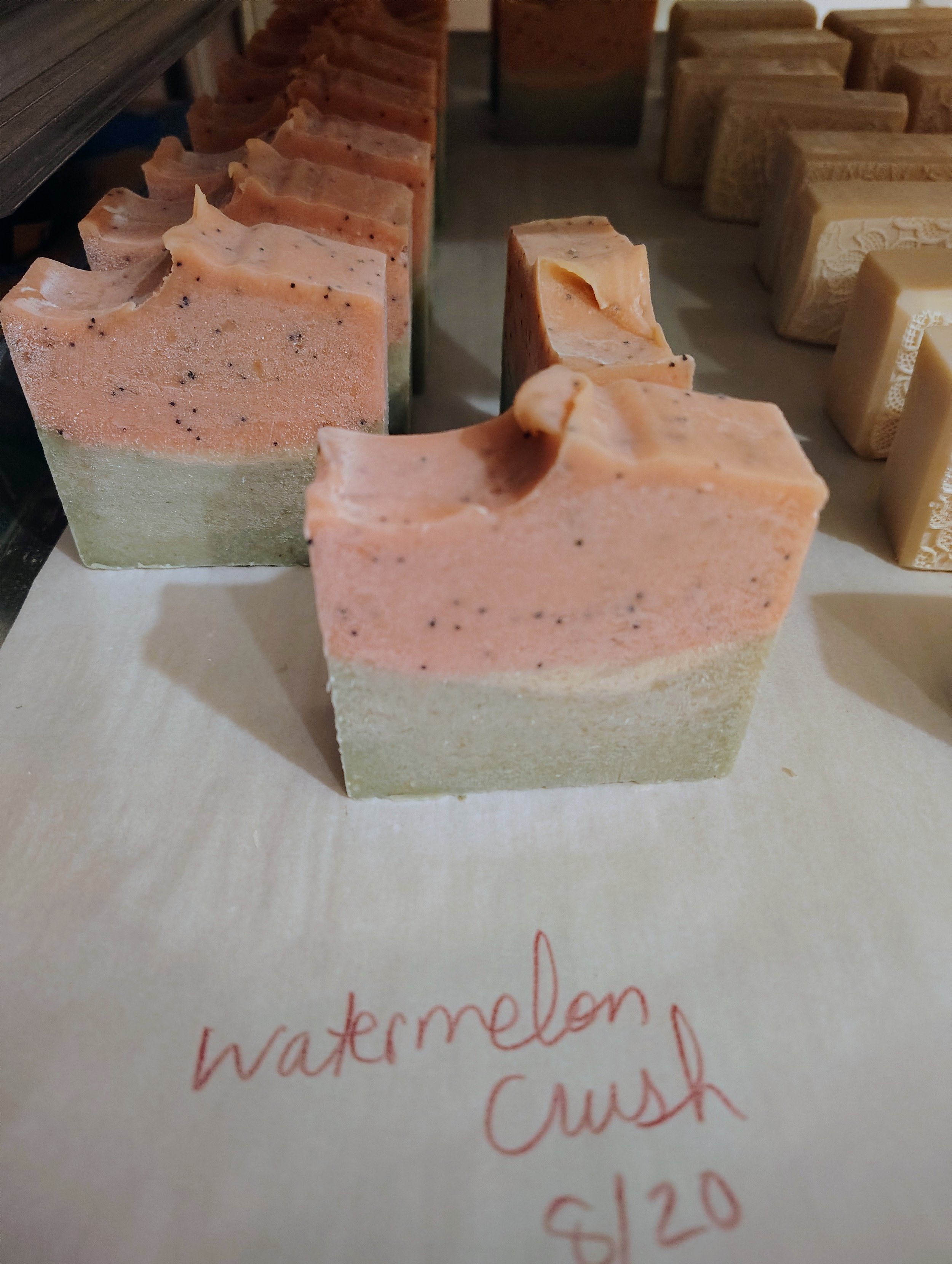 Ingredients: Goat milk, saponified: olive oil, shea butter, mango seed butter, cocoa butter, castor oil, coconut oil, honey